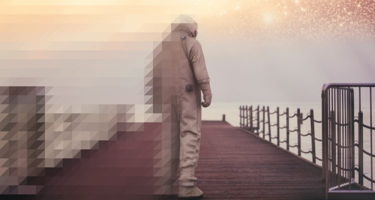 Lonely astronaut on the beach