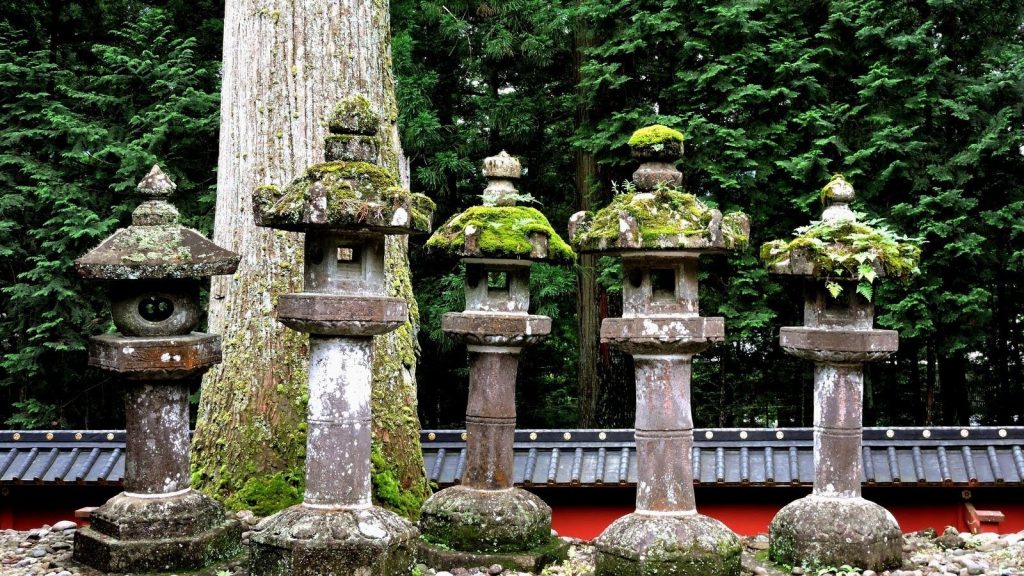 Cada uno de estos elementos tiene una historia. Una de las lámparas, por ejemplo, es conocida como 化灯籠 (bakedoro), la lámpara fantasma. Su fama reside en que, dado su particular diseño y las propiedades de sus materiales, esta lámpara genera más sombras de las normales de todo aquello que esté alrededor. Los samuráis de los siglos anteriores creían que por esto invocaba fantasmas y espíritus, por lo cual atacaban las sombras sin dar con esas ilusorias amenazas. Es por esto que pueden verse en el enrejado las marcas de sus espadas, producto de la paranoia o del mal-flash. Tal fue el temor que infundió en la población, que aún hoy se enciende sólo una vez al año, del 13 al 17 de abril, durante el festival Yayoi, cuando el lugar está lleno de gente que podría ayudar en caso de un ataque espectral.